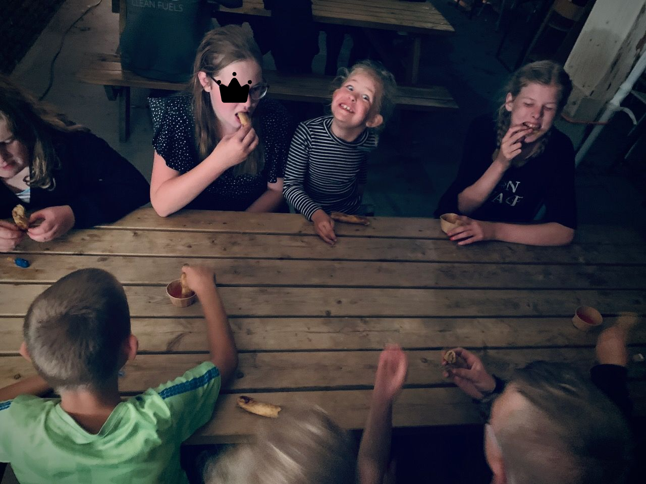 Na het eten is er de Greppeltocht. Lopen in groepjes en zorgen dat je niet gepakt wordt door de rondrijdende auto's en andere vervoersmiddelen. Omdat deze zeer geheime missie in het donker gebeurt zijn er (bijna) geen foto's van. We waren pas halverwege toe er een hevig noodweer mét onweer losbarstte. Binnen tien minuten was iedereen opgespoord en werd de boel veilig naar het thuisfront gebracht. Daar werden zelfgemaakte loempia's geserveerd.